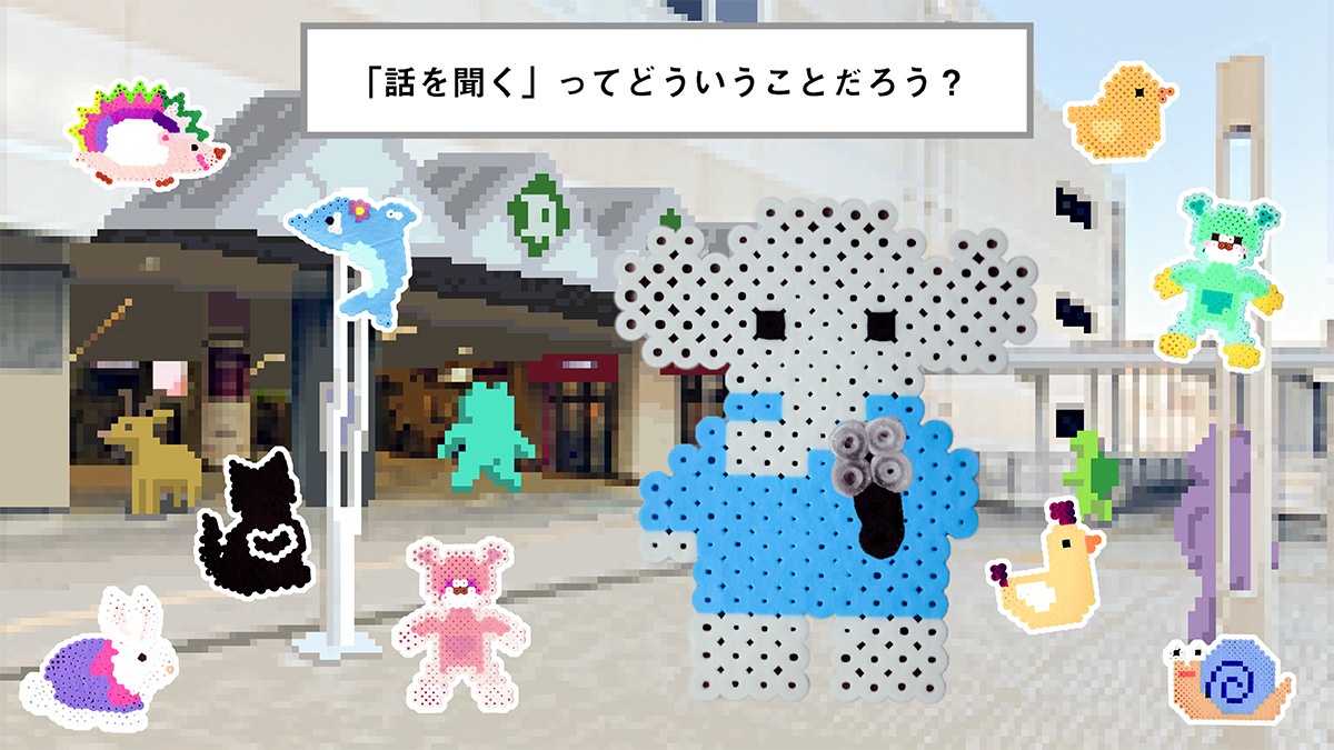 そこで、「話を聞く」ってどういうことか、アイロンビーズを作りながらディスカッションし、そこで出てきた意見と完成したアイロンビーズを組み合わせたアニメーションを作ったというわけです。